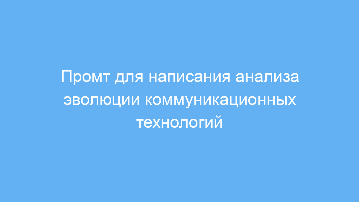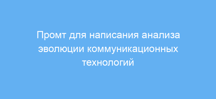 Промт работает, задавая искусственному интеллекту чёткое задание — выступить в роли историка и проанализировать изменения в коммуникационных технологиях с 20-го века по настоящее время. В запрос включены требования обратить внимание на социальные, бизнес-аспекты и доступ к информации, а также необходимость дать примеры и статистику. Это помогает нейросети сформировать развернутый и информативный ответ, минимизируя необходимость дополнительного редактирования.