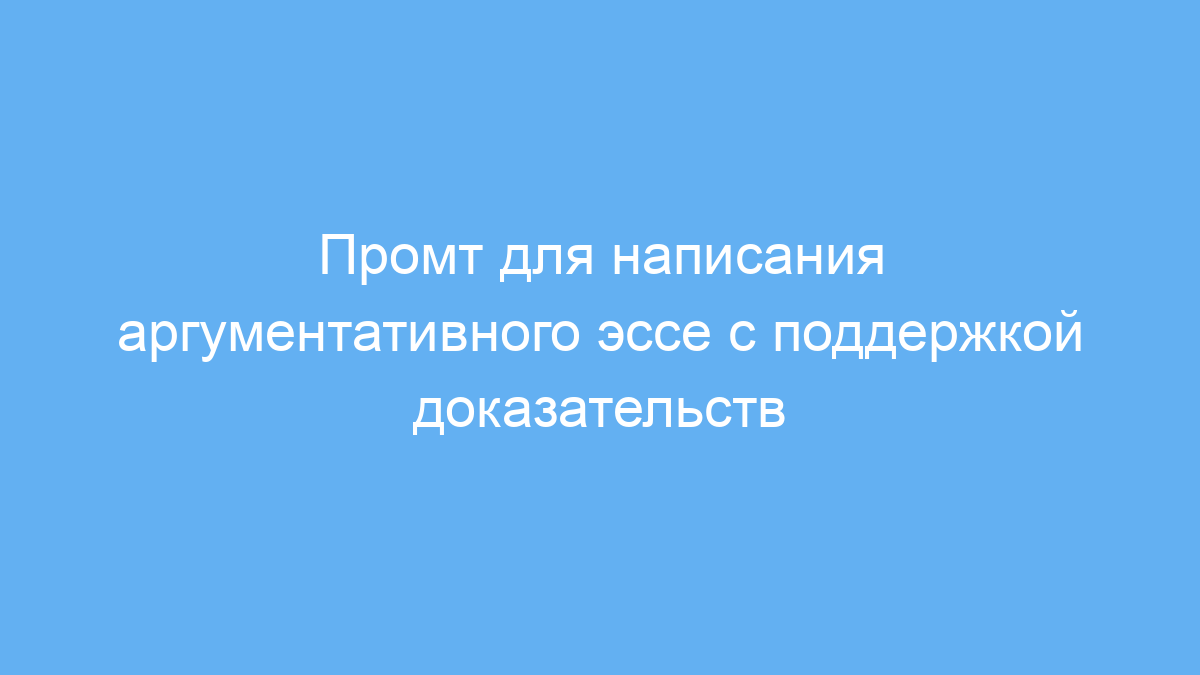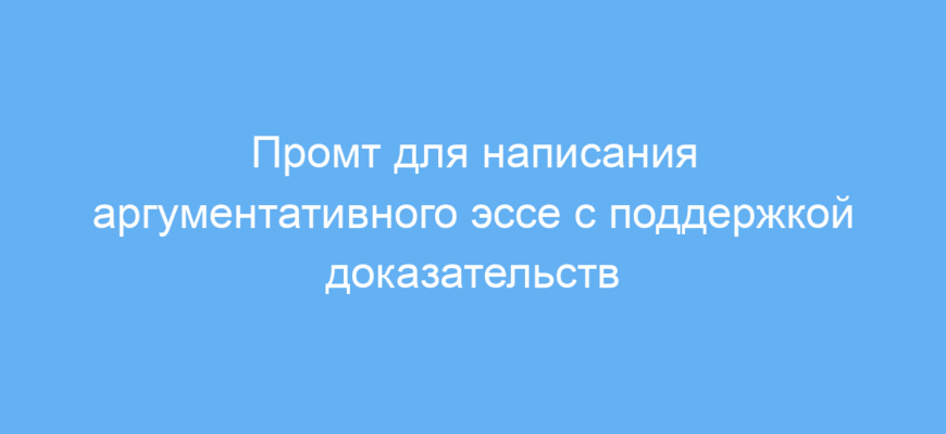 Этот промт предназначен для студентов, преподавателей, копирайтеров и всех, кто хочет быстро и качественно написать аргументативное эссе. Он помогает структурировать мысль, сформулировать чёткий тезис и подкрепить его надёжными доказательствами из достоверных источников. Такой подход особенно полезен при подготовке учебных работ, научных статей или контента, требующего убедительного обоснования позиции.