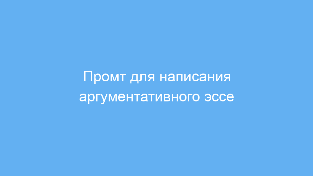 Этот промт предназначен для студентов, школьников, а также всех, кто сталкивается с задачей написания аргументативных эссе. Он помогает структурировать мысль, сделать текст убедительным и логичным. Если вы хотите быстро создать качественное эссе по любой тематике, этот инструмент значительно упростит ваш процесс работы и обеспечит выполнение важных правил, необходимых для успешного аргументирования.