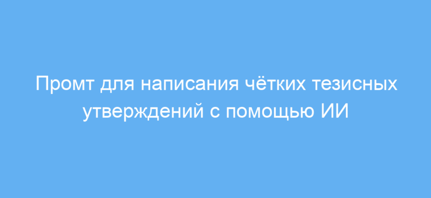 Перед началом важно подготовить информацию о теме, аргументах и целях вашего текста. Чем яснее вы ответите на вопросы промта, тем точнее будет итоговое тезисное утверждение.