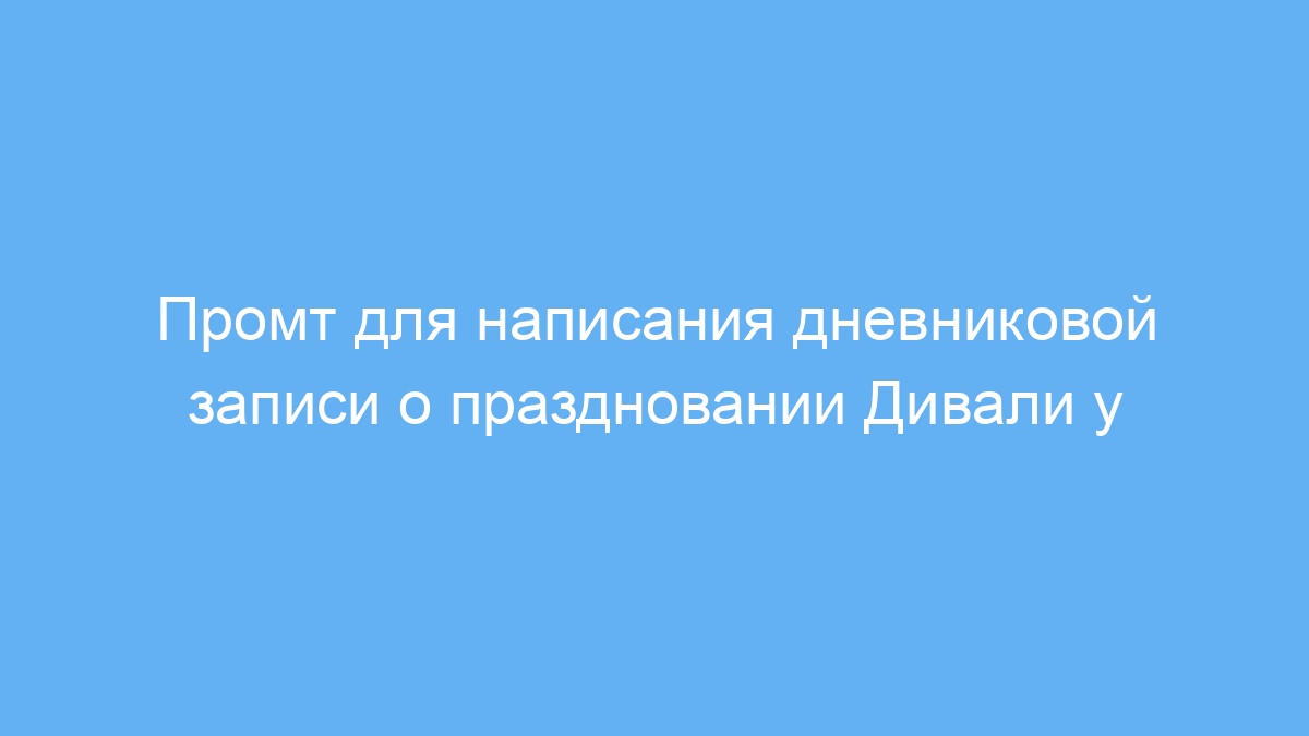Этот промт предназначен для тех, кто хочет создать эмоциональный и живой текст, описывающий личный опыт празднования Дивали. Он особенно полезен ученикам, студентам, авторам блогов или любителям творческого письма, которым нужно быстро получить пример дневниковой записи от лица вымышленных персонажей — Адарша или Акшиты.
