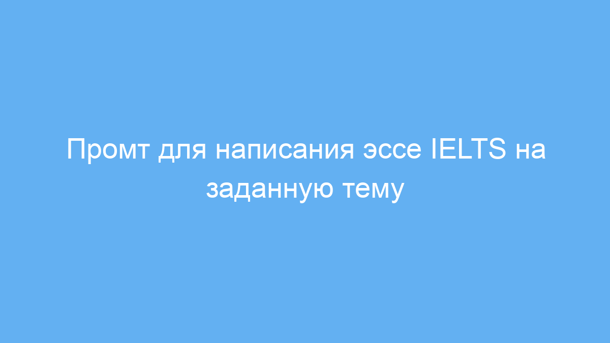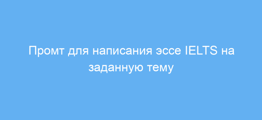 Этот промт предназначен для людей, которые готовятся к экзамену IELTS и хотят попрактиковаться в написании эссе. Он помогает разобраться с форматом и структурой задания, позволяя сосредоточиться на содержании текста. Используя такой промт, вы быстро получаете пример эссе, соответствующего лимиту в 300 слов, что особенно полезно для тренировки и проверки своих идей.