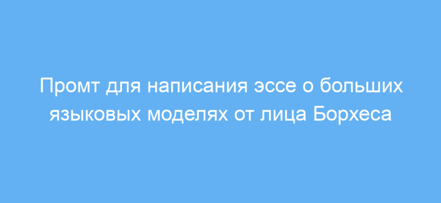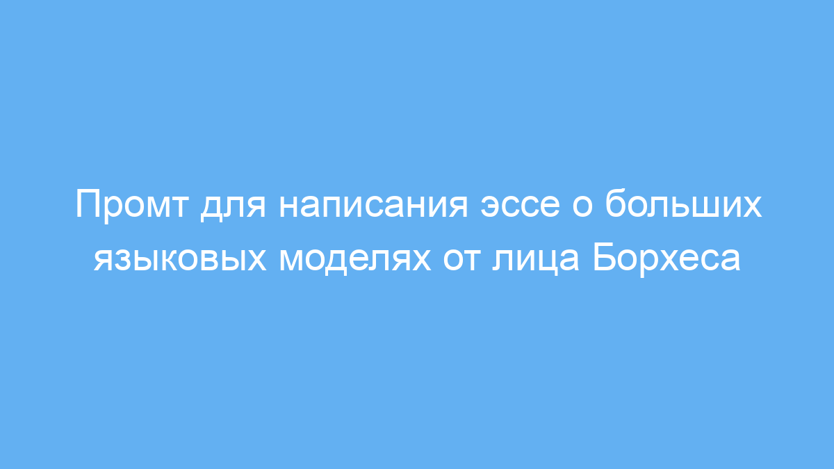 Этот промт создан для тех, кто хочет получить глубокий и структурированный анализ больших языковых моделей (БЯМ) через призму творчества Аргентина Хорхе Луиса Борхеса. Он идеально подойдет исследователям, студентам, блогерам и всем, кто интересуется искусственным интеллектом и литературой. С помощью промта можно быстро получить развернутое эссе, сочетающее техническое понимание и философские идеи Борхеса.