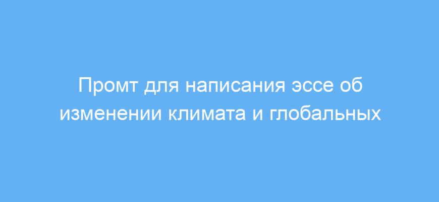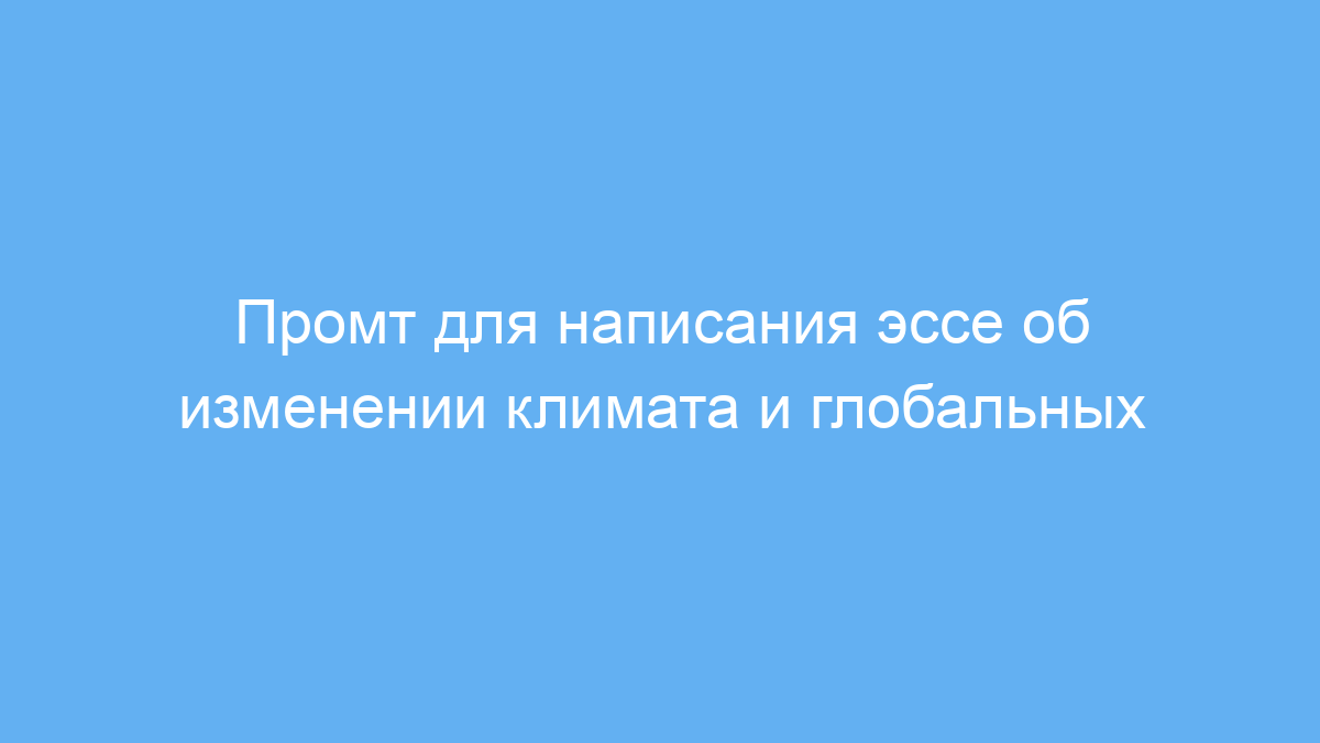 Этот промт создан для студентов, педагогов, а также для всех, кто хочет написать структурированное и грамотное эссе на тему изменения климата и его влияния на глобальные экосистемы. Он помогает поэтапно формулировать основные идеи, планировать текст, подбирать аргументы и примеры, а также корректно оформлять ссылки и список литературы по стилю APA.