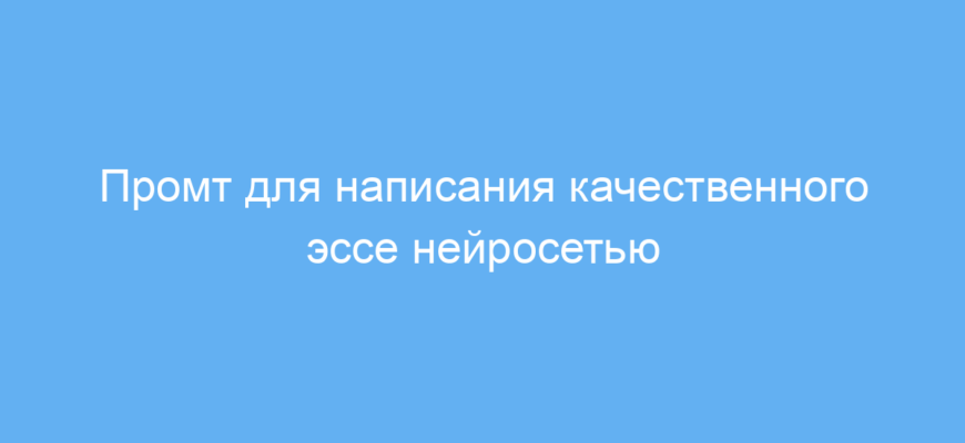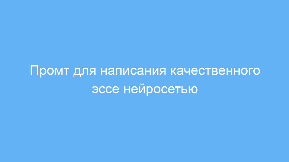 Этот промт создан для тех, кто хочет быстро и качественно получить полный текст эссе с помощью нейросети. Он особенно полезен студентам, преподавателям, копирайтерам и всем, кто сталкивается с необходимостью создания аргументированных и грамотно структурированных сочинений.