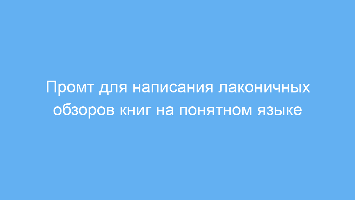 Этот промт предназначен для тех, кто хочет быстро создавать качественные, ёмкие и понятные обзоры книг. Он пригодится блогерам, преподавателям, книжным клубам и авторам обзоров, которые стремятся выделить главные идеи произведения без сложного академического жаргона.