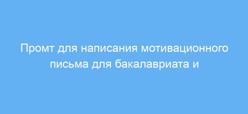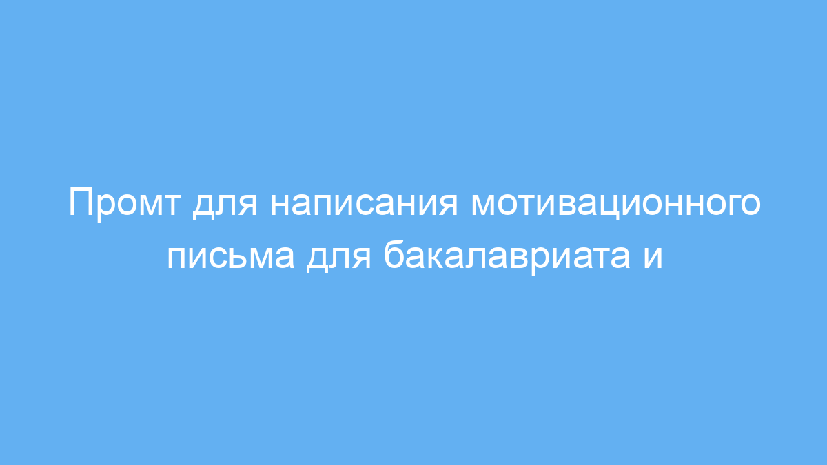 Этот промт предназначен для студентов, абитуриентов и писателей, которые хотят создать качественное мотивационное письмо для поступления в бакалавриат или магистратуру. Он помогает структурировать письмо, сделать его убедительным и персонализированным, учитывая важные элементы, которые ценятся при рассмотрении заявлений приёмными комиссиями.