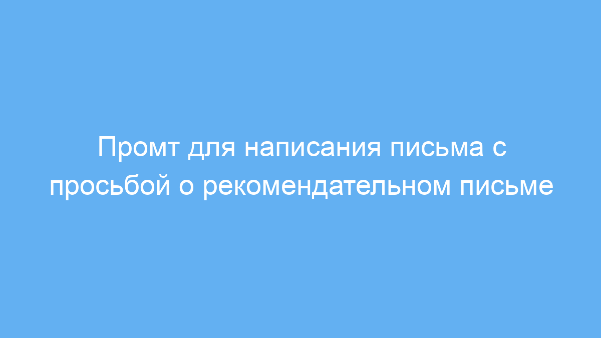 Данный промт позволяет быстро создать грамотное и доброжелательное письмо с просьбой о рекомендательном письме. Он структурирует текст так, чтобы просьба была понятной, содержательной и вежливо оформленной, а рекомендации основывались на реальном опыте сотрудничества. Это экономит время и снижает риск упустить важные детали.