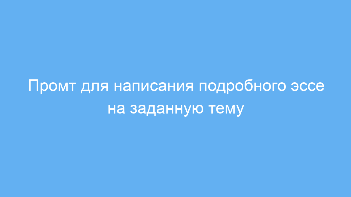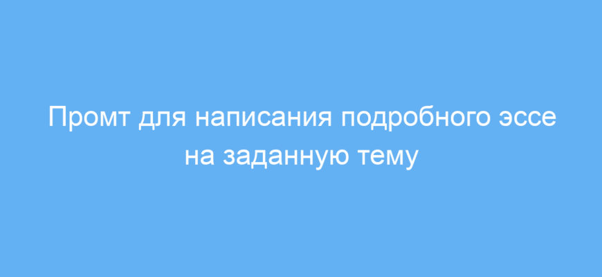 Использование данного промта позволяет значительно упростить процесс написания глубокого эссе на любую тему. Он помогает структурировать мысли, добавляет нужный стиль, опирается на проверенные источники и делает текст выразительным и профессиональным. Таким образом, вы экономите время и получаете качественный результат, подходящий для учёбы или работы.