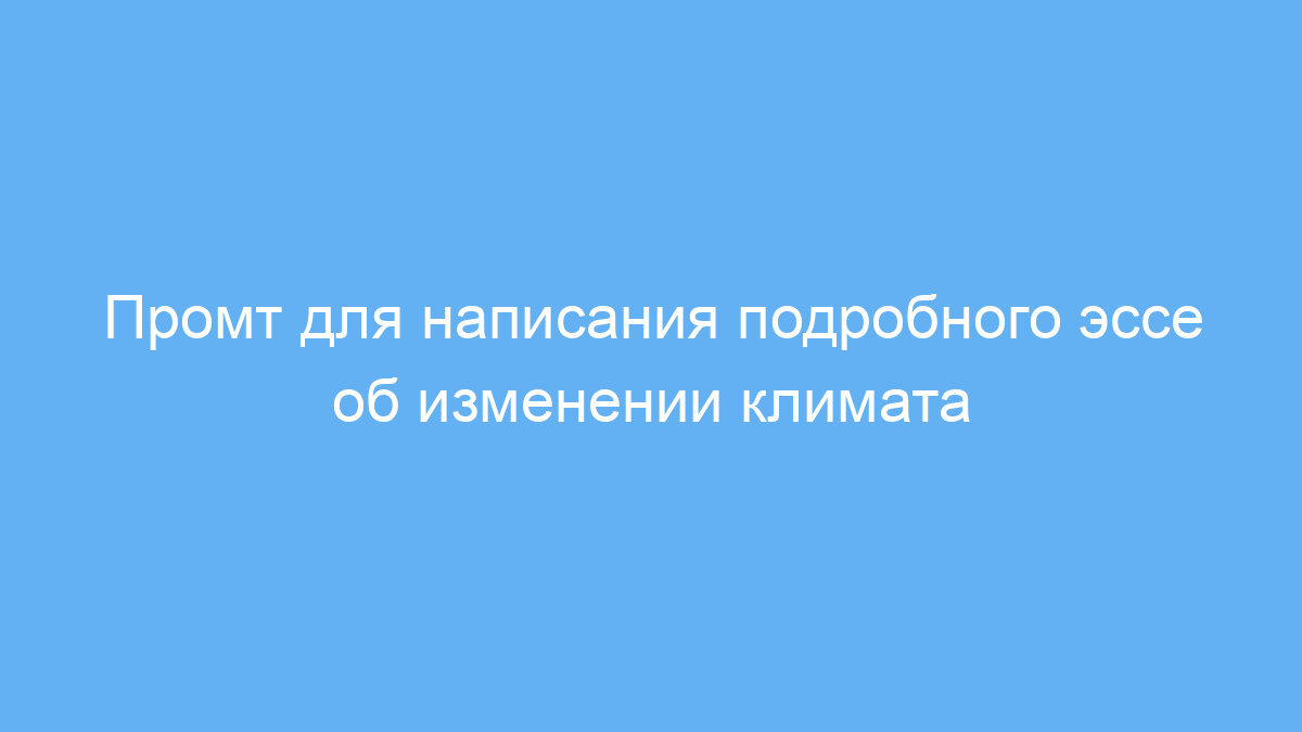 Использование данного промта позволяет быстро получить полный и хорошо структурированный текст по теме изменения климата, с упором на важные аспекты, такие как загрязнение окружающей среды. Это значительно экономит время и помогает лучше подготовиться к учебным или профессиональным задачам.