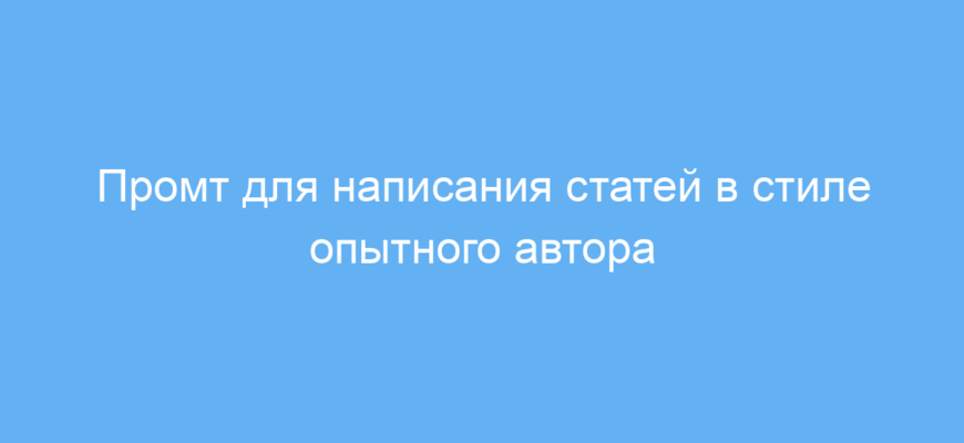 Главная задача промта — научить нейросеть писать тексты, которые выглядят так, будто их написал человек с глубоким пониманием темы. Это помогает сэкономить время на редактировании и повышает качество контента для сайта или проекта.