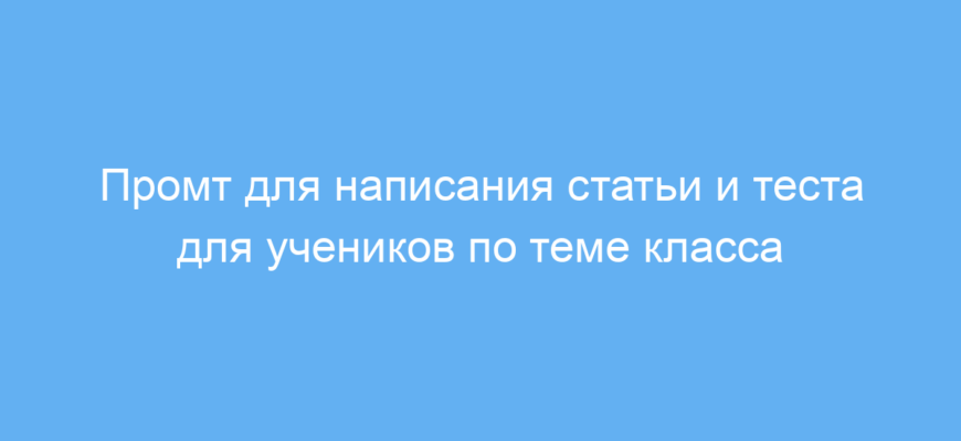 Принцип работы прост: учитель указывает номер класса и тему. Искусственный интеллект пишет адаптированную под возраст детей статью и генерирует диагностические вопросы. Если тема не подходит для указанного класса, промт предупреждает об этом вместо создания неподходящего текста.