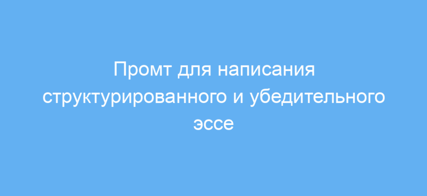 Использование этого промта значительно облегчает процесс создания структурированного и убедительного эссе. Он направляет модель на создание текста с чёткой логикой и аргументацией, экономит время на планирование и структурирование. Особенно он полезен тем, кто хочет быстро получить качественный результат с учётом индивидуальных требований и стиля.