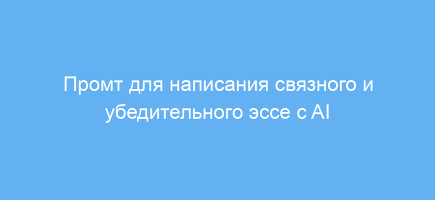 Этот промт облегчает и ускоряет процесс написания качественных эссе, помогая не только создать структурированный и грамотно оформленный текст, но и развить навыки критического мышления и творческого самовыражения. Он универсален и подходит для разных уровней и тем, что делает его незаменимым помощником в учёбе и работе.