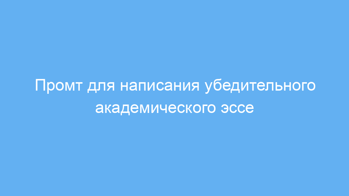 Этот промт предназначен для студентов, исследователей и всех, кто хочет самостоятельно подготовить структурированное и убедительное академическое эссе. Он помогает систематизировать процесс написания, улучшить аргументацию и повысить качество текста, что особенно важно при подготовке работ для учебы, конференций или публикаций в журналах.