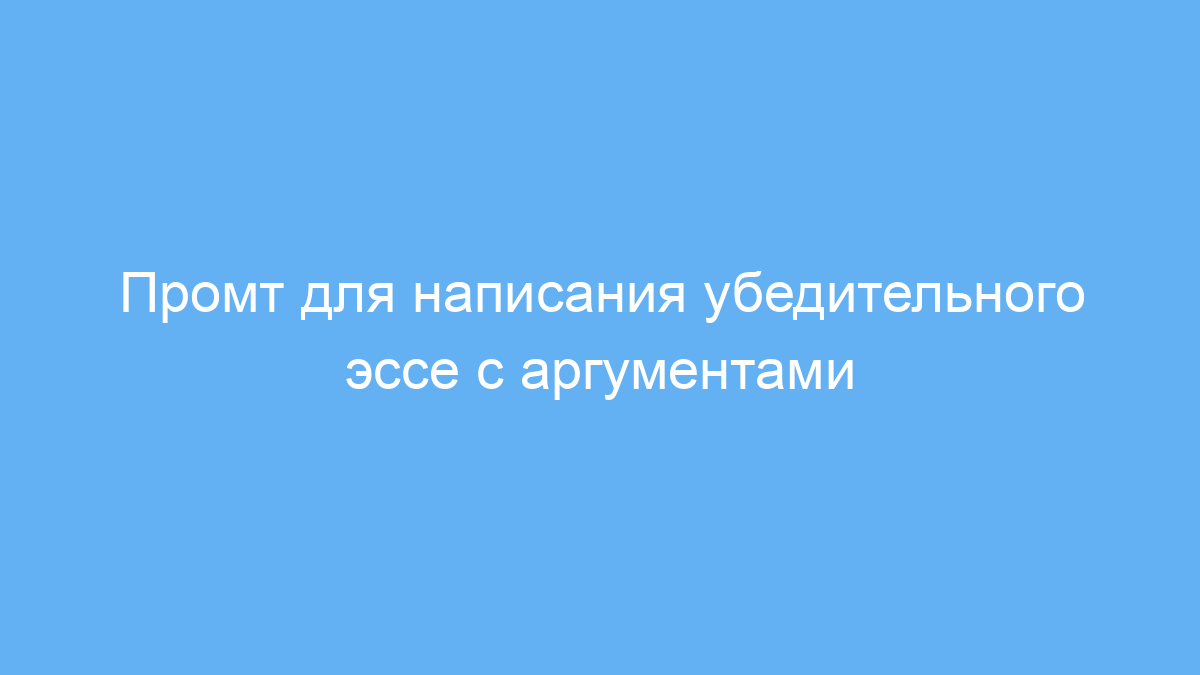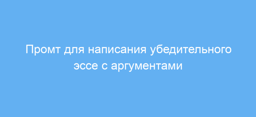 Использование этого промта позволяет быстро получить структурированное, логичное и убедительное эссе на любую тему. Такой подход экономит время, облегчает процесс подготовки письменных работ и помогает повысить качество аргументации. Особенно полезен этот промт при подготовке к экзаменам, написании научных или развёрнутых текстов, где важна чёткая структура.