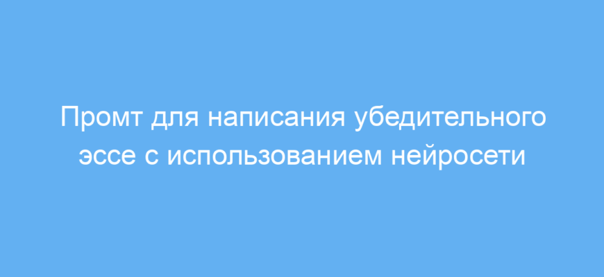 Использование данного промта экономит время и силы на составление убедительного текста. Он помогает собирать мысли в чёткую структуру, улучшает качество аргументации и делает эссе более профессиональным и легко читаемым. Благодаря продуманной логике и элементам риторики текст получается более влиятельным и выразительным.