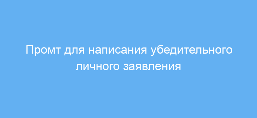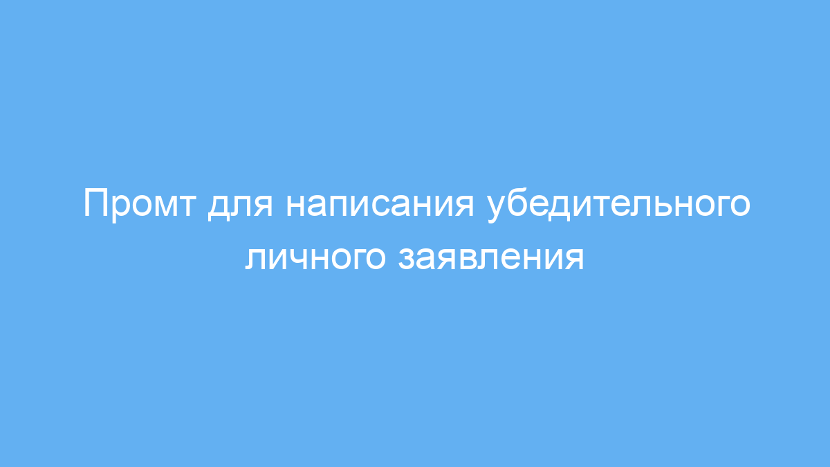 Промт помогает решить проблему поисков слов и правильного построения текста, дает нейронной сети задачу создать именно то заявление, которое максимально соответствует вашим индивидуальным данным и целям. Для работы достаточно указать, куда именно вы поступаете, и промт адаптирует текст под эту задачу.
