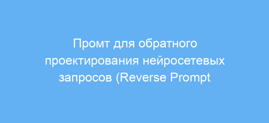 Этот промт предназначен для специалистов, которые хотят понять структуру и смысл сложных запросов к нейросетям, таких как ChatGPT. Обратное проектирование промтов помогает выявить главные цели, роль модели и детали взаимодействия, что делает работу с ИИ более управляемой и предсказуемой. Это полезно как для разработчиков, так и для пользователей нейросетей, желающих создавать более точные и эффективные запросы.