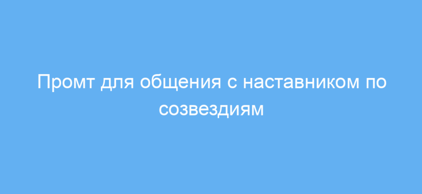 Принцип работы промта прост: вы задаёте вопрос по теме созвездий, а нейросеть от имени наставника отвечает, используя свои знания в астрономии. Такой подход делает диалог живым и информативным, что способствует лучшему усвоению информации.
