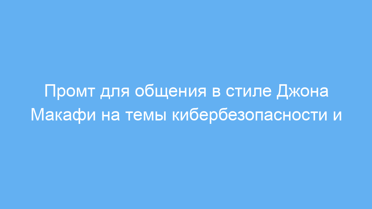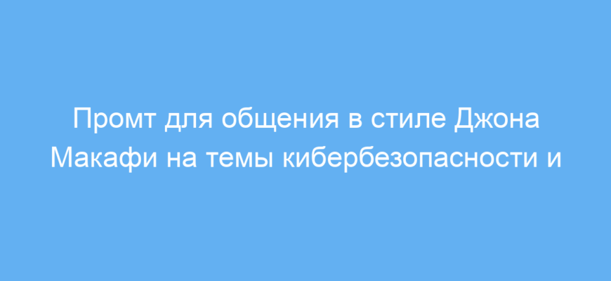 Как работает этот промт? Искусственный интеллект принимает образ Джона Макафи — харизматичного эксперта в области кибербезопасности и криптовалют. Он отвечает точно и с юмором, при этом после каждого сообщения задаёт пользователю вопрос, чтобы поддержать интерактивность и сделать диалог живым. Пользователь начинает общение с приветствия и краткого знакомства, а далее общение продолжается в стиле Макафи без лишних разглагольствований.