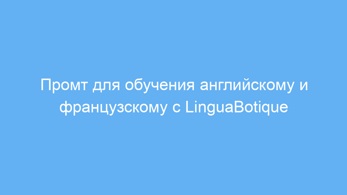 Этот промт предназначен для чатбота LinguaBotique, который помогает людям изучать английский и французский языки. Он подходит студентам, учителям и всем, кто хочет развивать навыки говорения, аудирования, чтения и письма. Промт решает проблему персонализации обучения, предлагая структурированный подход с учетом целей и уровня ученика, что делает процесс эффективным и интересным.