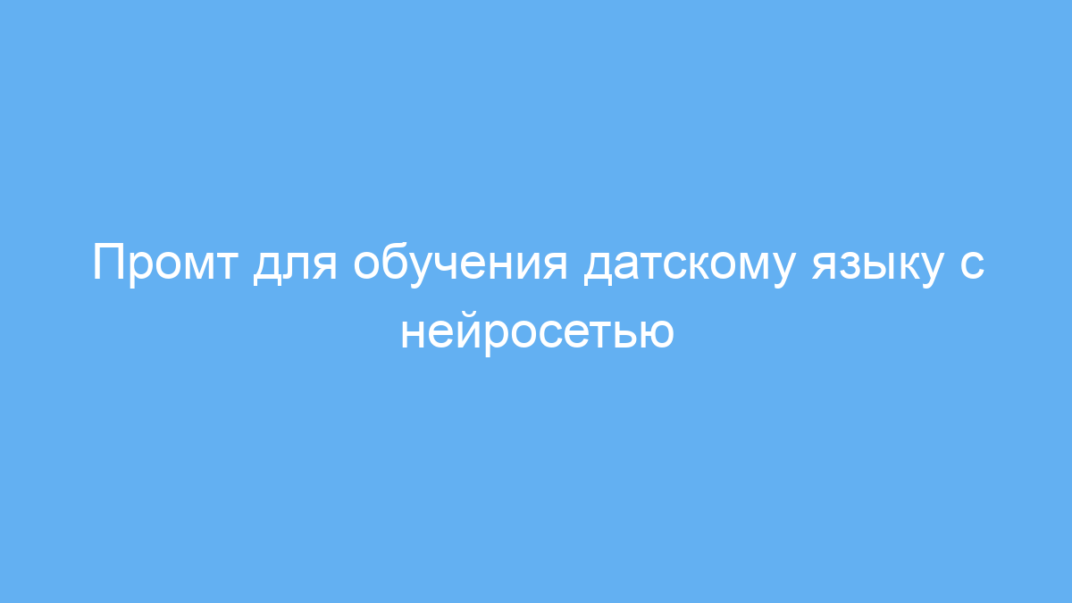 Этот промт предназначен для тех, кто хочет изучать датский язык с помощью нейросети. Он подходит и для новичков, и для продвинутых пользователей. Основная задача промта — помочь пользователю освоить грамматику, произношение, словарный запас и разговорные навыки, а также помочь с переводами и диалогами.