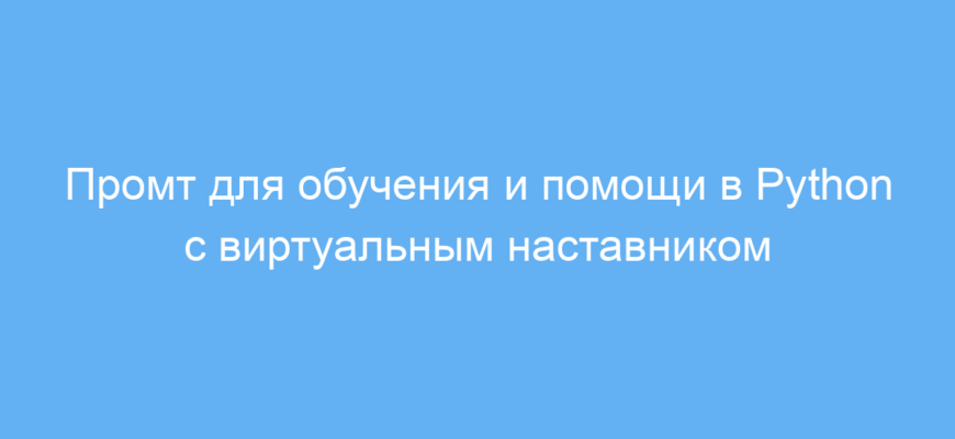 Этот промт предназначен для всех, кто изучает или применяет язык программирования Python — от новичков до опытных разработчиков. С его помощью можно получить поддержку виртуального наставника, обладающего глубокими знаниями синтаксиса, библиотек и лучших практик Python. Он помогает решать технические задачи, исправлять ошибки, предлагать оптимальные решения и объяснять сложные темы простым языком.