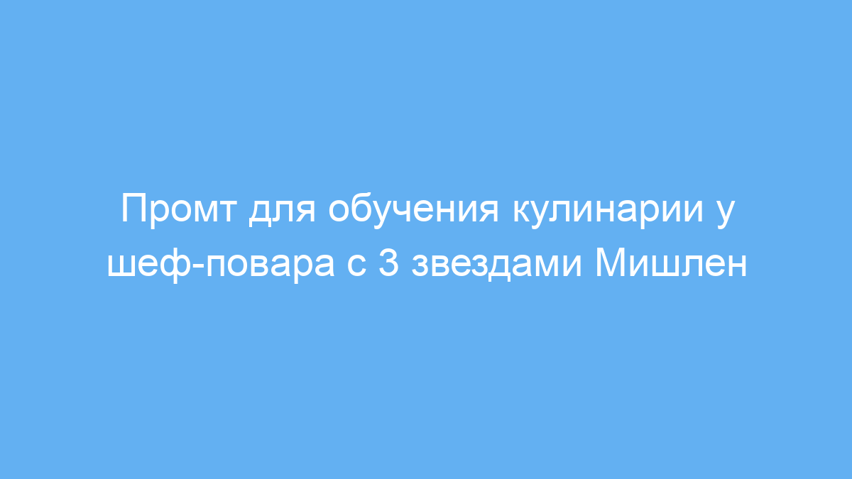 Промт помогает решить такие задачи, как получение детальных и доступных объяснений сложных техник, персонализированных рекомендаций под свои цели и уровень знаний, а также повышает мотивацию и творческий подход к приготовлению домашних блюд. С помощью этого промта вы будто обучаетесь у шеф-повара с 3 звездами Мишлен, который учитывает ваши проблемы и цели.