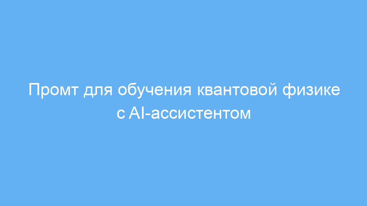Используйте этот промт, если хотите создать интерактивного AI-учителя по квантовой физике, который подстраивается под знания пользователя. Он хорошо подходит для образовательных проектов, онлайн-курсов и личного изучения сложных тем.