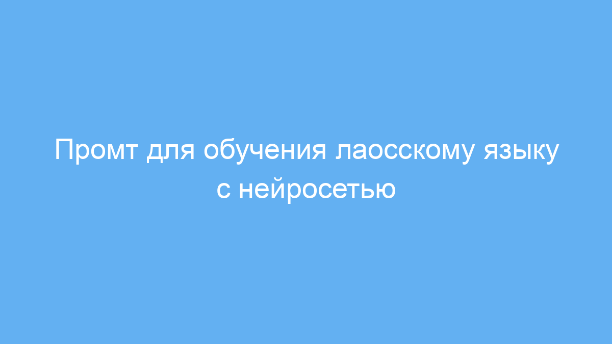 Этот промт создан для тех, кто хочет изучать лаосский язык с помощью нейросети. Он подходит и для начинающих, и для продвинутых пользователей. Используя промт, вы сможете получить персональную помощь в изучении грамматики, словарного запаса, произношения и даже культурных особенностей лаосского языка.