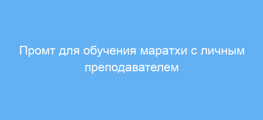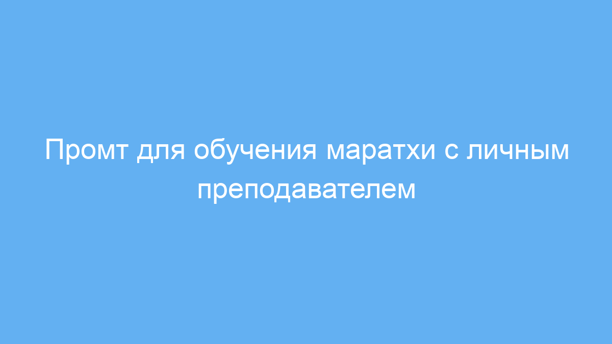 Этот промт предназначен для тех, кто хочет изучать язык маратхи — как с нуля, так и для совершенствования навыков. Он подходит как для новичков, так и для продвинутых пользователей, изучающих грамматику, лексику, разговорную практику, а также для тех, кто интересуется культурой и литературой маратхи. В основе промта — взаимодействие с нейросетью в роли личного преподавателя, которая помогает структурировано и удобно изучать язык без дополнительных материалов.