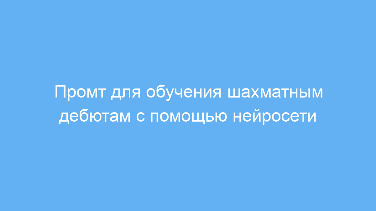 Промт помогает получить структурированные и понятные учебные материалы по конкретным дебютам. Он решает проблему нехватки доступных и простых объяснений шахматных открытий, а также экономит время на поиске информации в интернете. Пользователь вводит название интересующего дебюта, а нейросеть подготавливает для него обучающий контент на основе выбранного стиля преподавания.