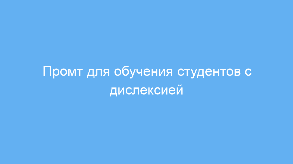 Использование этого промта помогает адаптировать процесс обучения под особенности студентов с дислексией. Он делает объяснения более понятными с помощью специальных методов. Это экономит время и силы, повышая эффективность изучения сложного материала.