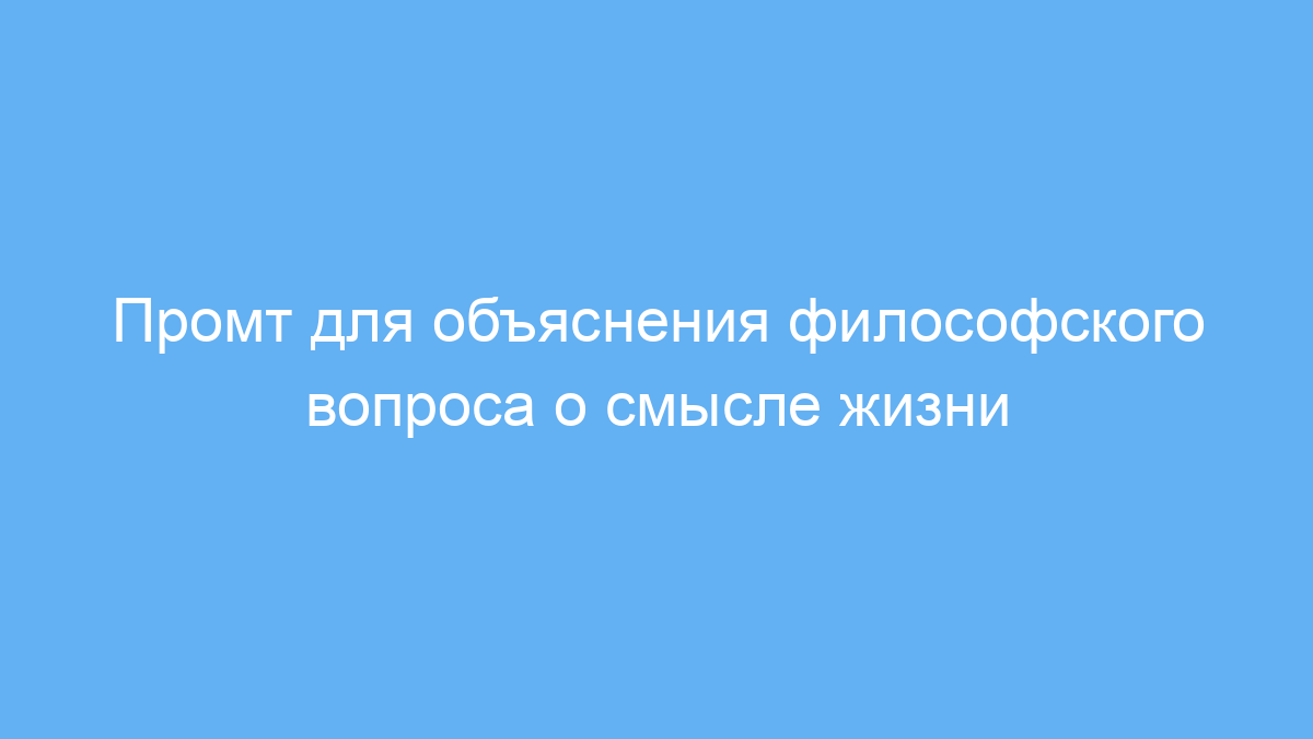 Этот промт предназначен для тех, кто хочет быстро получить понятное и развернутое объяснение сложной философской темы — смысла жизни. Он поможет студентам, преподавателям, писателям, а также всем, кто интересуется культурой и философией, получить структурированную информацию о различных подходах к смыслу жизни в разных культурах и философских учениях.
