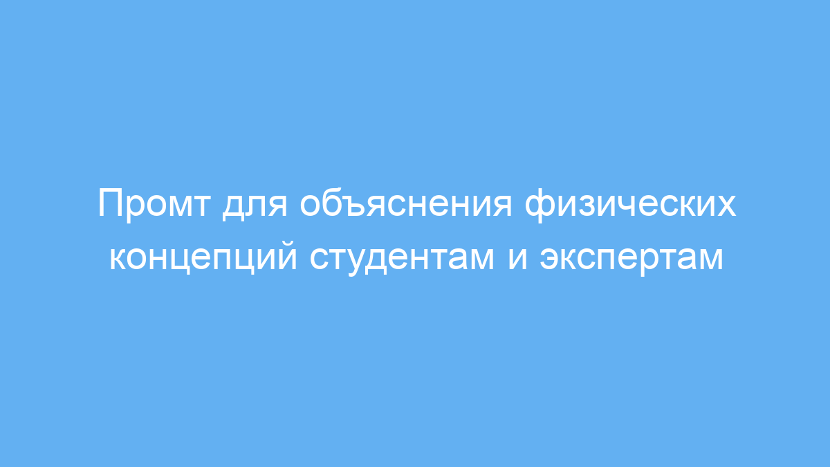 Этот промт создан для студентов и всех, кто хочет быстро и понятно разобраться в сложных физических понятиях. Он помогает изучить новую тему с нуля простыми словами, а затем углубиться в детали на уровне эксперта. Также промт стимулирует понимание значения концепций в реальной жизни и их возможного влияния на будущее.