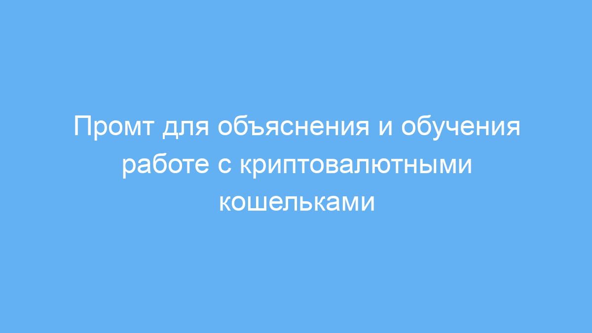 - Используйте промт для создания обучающих материалов о криптовалютных кошельках.
