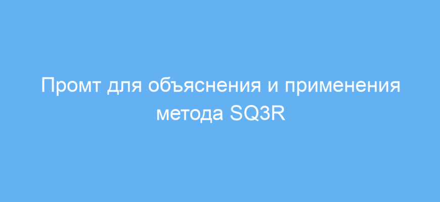 Работает промт так: вы указываете тему [x], и нейросеть подробно раскрывает все стадии метода SQ3R, даёт советы и показывает, как успешно использовать метод для изучения выбранной темы.