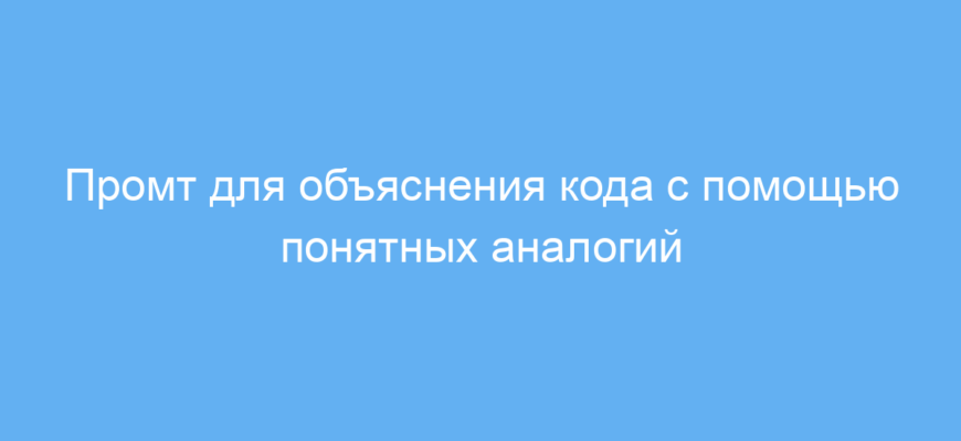 С помощью этого промта вы можете легко и быстро объяснять сложные коды и технические концепции простыми словами. Это экономит время на разъяснения, помогает лучше усваивать материал и делает обучение более доступным и интересным.
