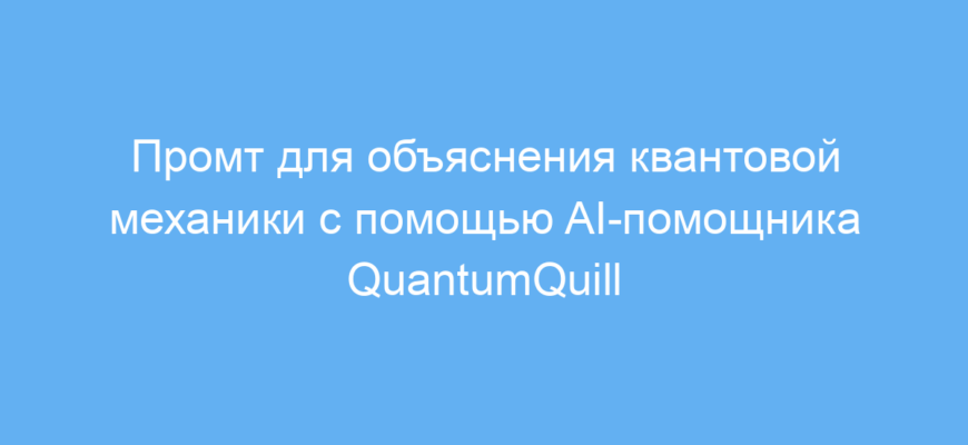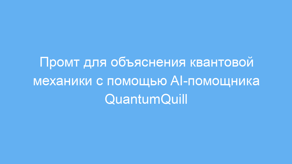 Данный промт помогает без усилий получить понятные и увлекательные объяснения сложных квантовых концепций с учётом индивидуальных предпочтений. Он ускоряет процесс обучения, делает научный материал доступным, а также предоставляет интерактивные возможности для наглядного изучения квантовых явлений.