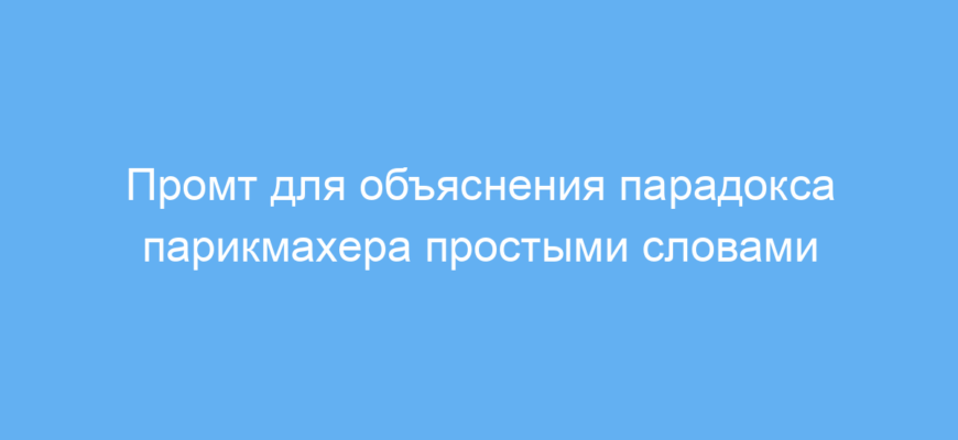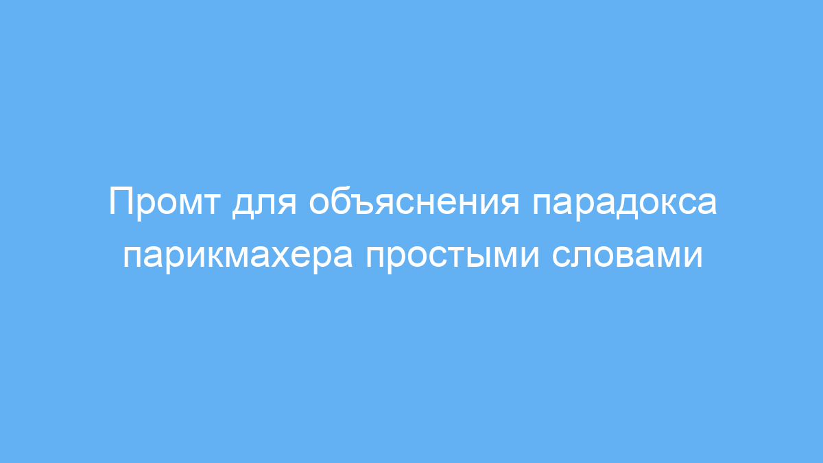 Этот промт создан для тех, кто хочет легко и понятно объяснить сложную логическую загадку — парадокс парикмахера. Он поможет учителям, студентам и всем, кто изучает логику или философию, быстро получить простое объяснение парадокса без сложных терминов. Задача промта — показать противоречие в определении множества на примере парикмахера, который бреет тех, кто не бреет себя сам.