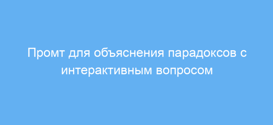 Промт упрощает процесс изучения парадоксов — он автоматически выдаёт понятное объяснение и предлагает узнать о других парадоксах, благодаря чему увеличивается вовлечённость и интерактивность общения с искусственным интеллектом.
