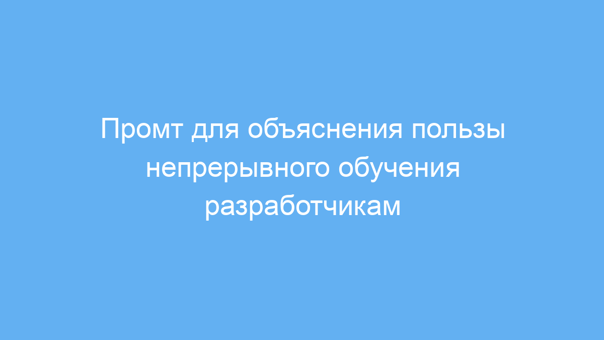 Этот промт предназначен для разработчиков программного обеспечения, преподавателей, HR-специалистов и всех, кто занимается профессиональным развитием IT-кадров. Он помогает сформулировать четкий и понятный ответ о том, как непрерывное обучение влияет на навыки разработчиков и их конкурентоспособность на рынке труда.