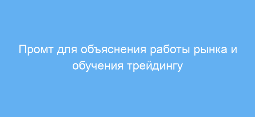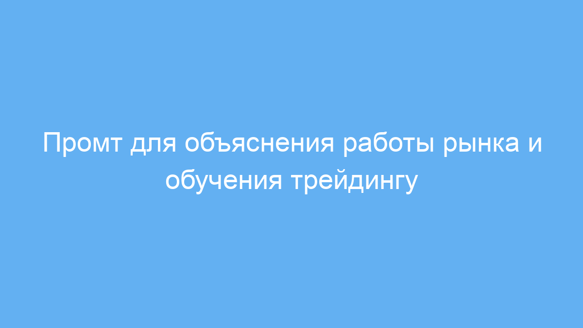 Этот промт можно адаптировать под разные задачи в обучении трейдингу и анализе рынка. Вот два примера: