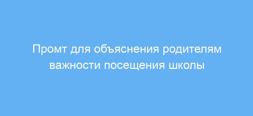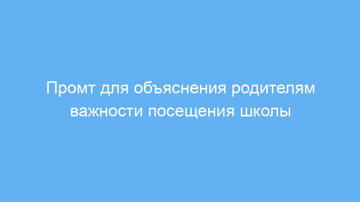 Промт решает проблему непонимания родителями значимости посещения школы и правил поведения. С его помощью можно сформулировать чёткое и дружелюбное объяснение, избегая конфликта, а также подчеркнуть, что регулярное обучение важно для успеха ребёнка.