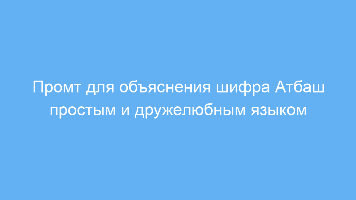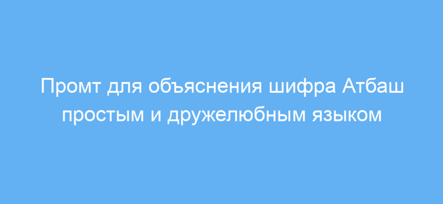 Промт работает следующим образом: он задаёт пользователю простые вопросы для оценки уровня знаний, подробно и понятно объясняет суть шифра Атбаш, приводит наглядные примеры и предлагает пользователю самому попробовать зашифровать или расшифровать сообщения. При этом нейросеть отвечает терпеливо и дружелюбно, поощряет обратную связь и подводит итог взаимодействия.