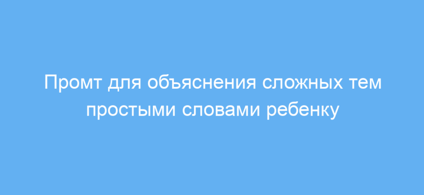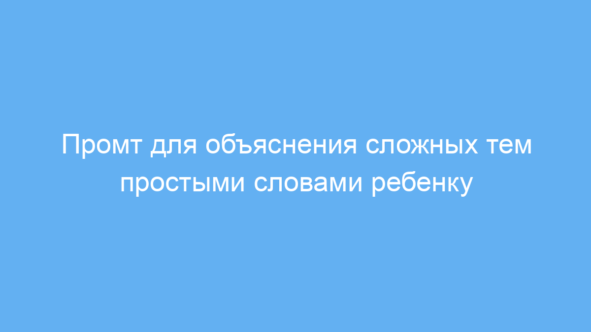 Этот промт создан для тех, кто хочет легко и понятно объяснять сложные вещи детям или новичкам. Он помогает объяснять темы максимально просто, используя слова, которые поймет даже ребенок 6 лет. Также он подходит для тех, кто хочет тренировать навык объяснения — пользователь может либо получать объяснения, либо пробовать объяснять сам, а нейросеть будет задавать вопросы и помогать.