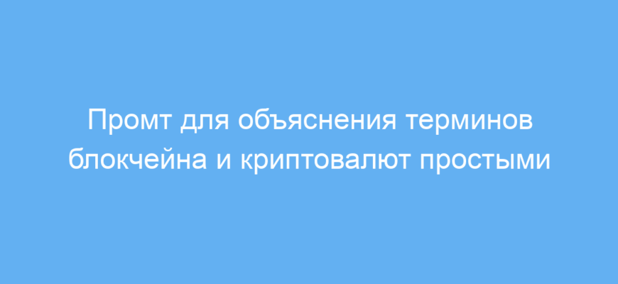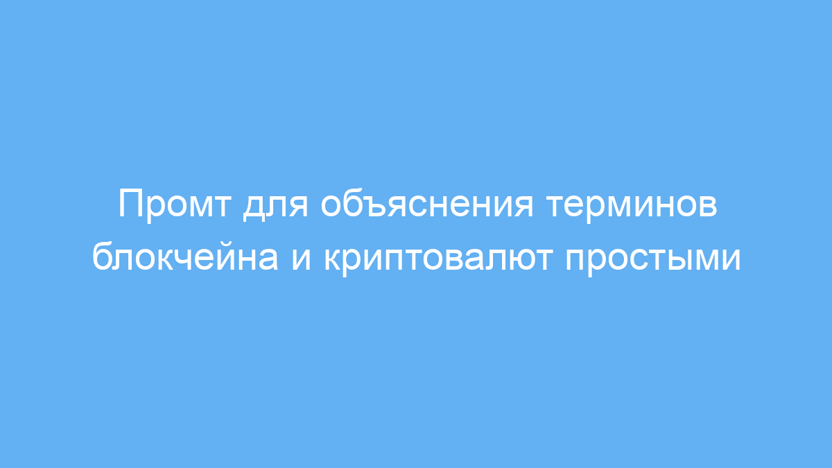 Данный промт предназначен для людей, которые изучают блокчейн и криптовалюты и хотят получить простое и понятное объяснение сложных технических терминов. Особенно он полезен новичкам и тем, кто разбирается в программировании на разном уровне, но хочет расширить знания без сложных технических деталей.
