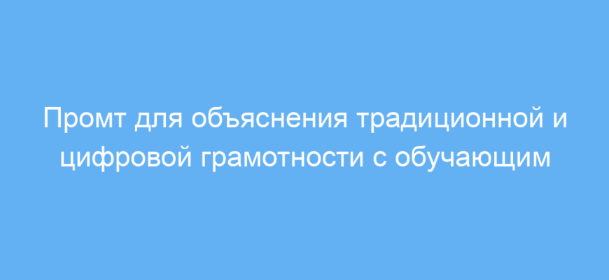 Пример 1: Методист школ использует промт для создания интерактивного урока по грамотности, чтобы объяснить ученикам, почему важно осваивать и традиционную, и цифровую грамотность.