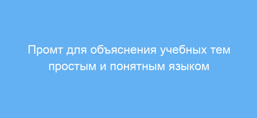 Этот промт предназначен для тех, кто хочет получить развернутые и доступные объяснения сложных учебных тем. Он особенно полезен студентам, преподавателям, репетиторам и всем, кто изучает или преподаёт разные предметы. С помощью промта можно быстро сформировать понятное и структурированное объяснение учебного материала, что помогает лучше усваивать знания и готовиться к экзаменам.